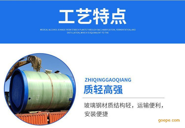 3.玻璃钢预制泵站 一体化提升泵站 污水提升井 一体化构造,占地面积小,进、出水口对接即可使用,安装简便。