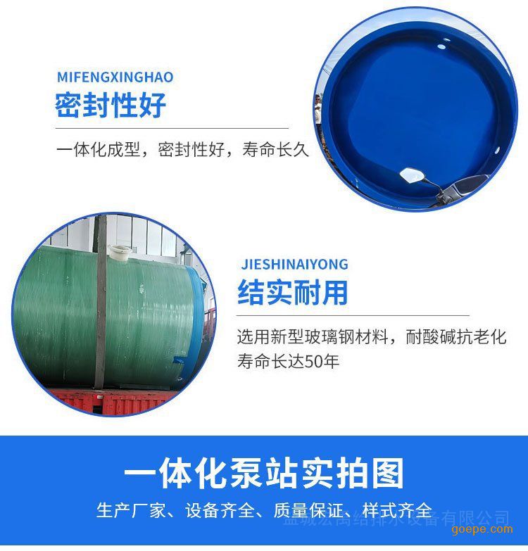 1.玻璃钢一体化提升泵站 理念先进:将固液分离、反冲洗(免清掏)、一体化、智能化(双保险控制)理念
