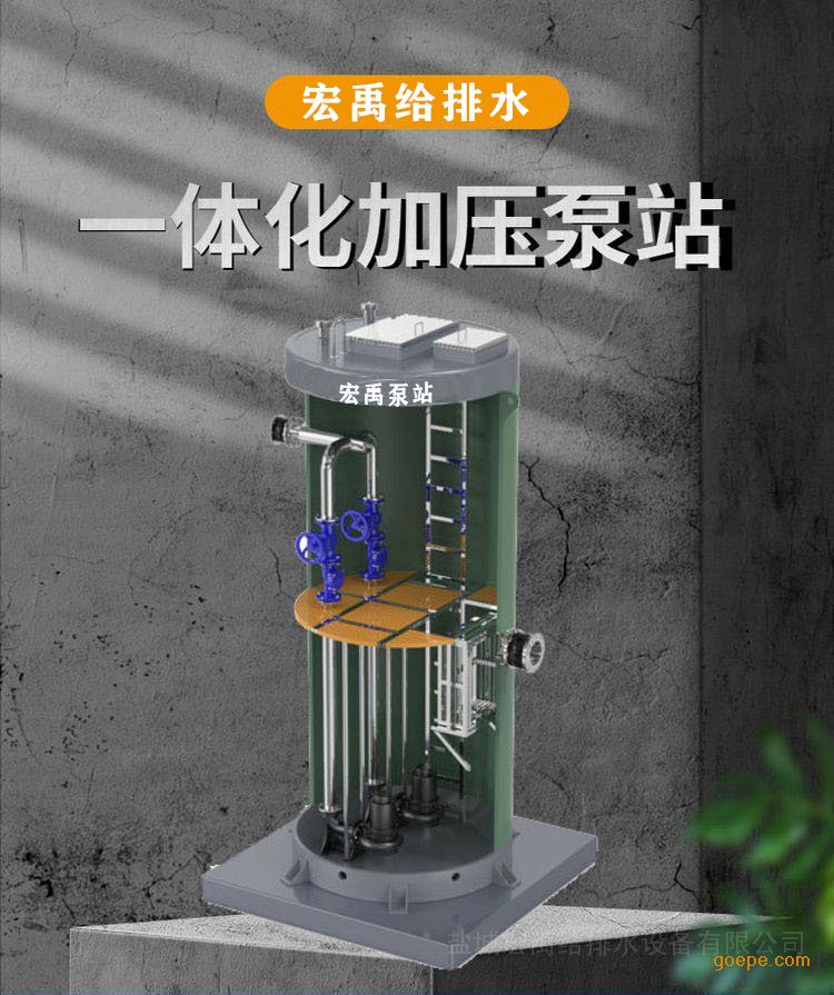 宏禹玻璃钢地埋式一体化雨水提升泵站日提升1800立方