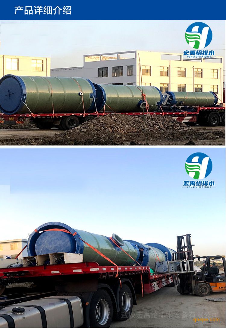 - 宏禹玻璃钢一体化雨水提升泵站埋地式安装3600x5000mm