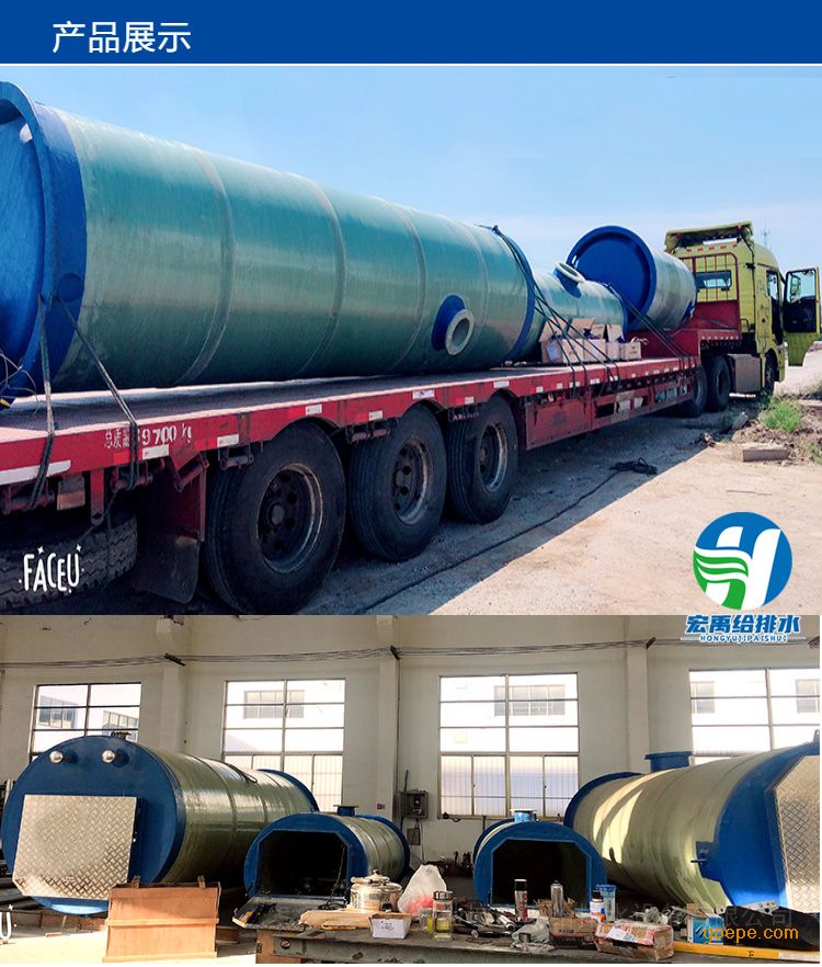 宏禹玻璃钢一体化雨水提升泵站埋地式安装3600x5000mm