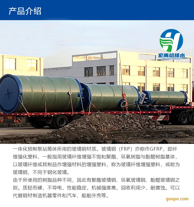 一体化雨水提升泵站优势:1、筒体采用环保型玻璃钢机械缠绕成形或碳钢结构内衬玻璃钢,高强耐腐,;